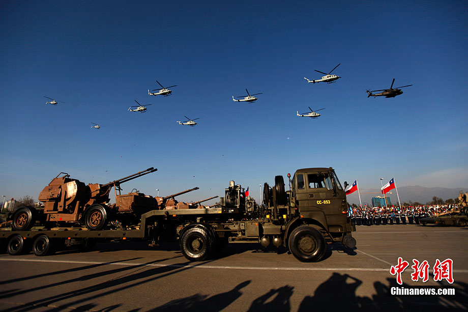 當(dāng)?shù)貢r(shí)間9月19日,智利首都圣地亞哥舉行了慶祝智利獨(dú)立200周年閱兵式。