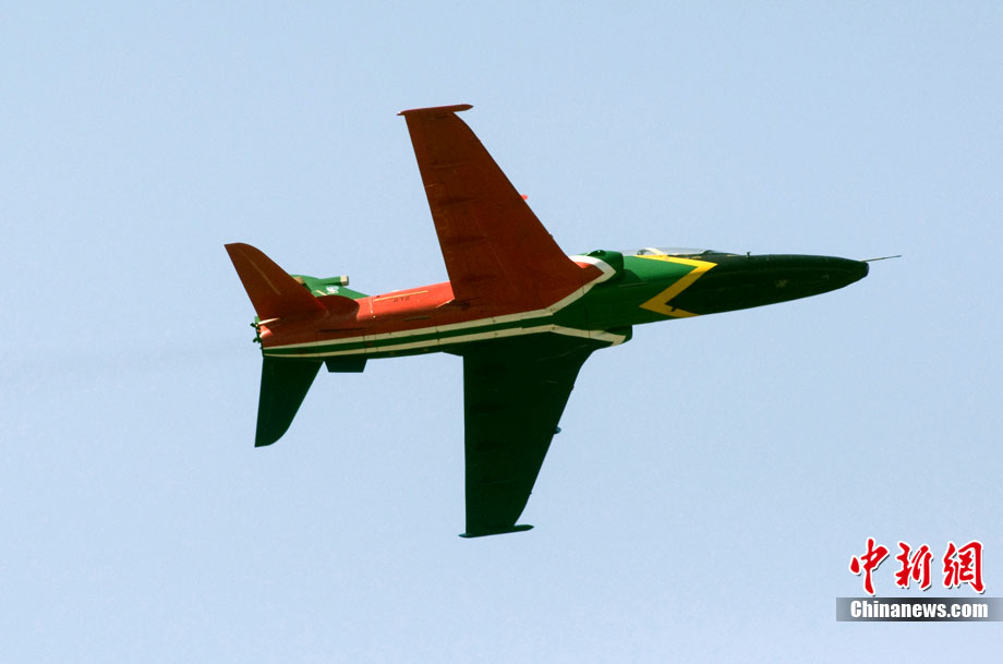 當(dāng)?shù)貢r(shí)間9月24日,南非開(kāi)普敦Ysterplaat空軍基地舉行了非洲最大的航空裝備和武器展覽會(huì)。來(lái)自世界各地的軍火商攜帶軍事裝備參展。圖為南非空軍武裝直升機(jī)在進(jìn)行飛行表演。