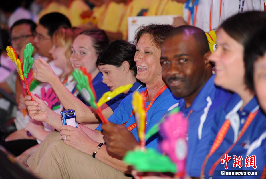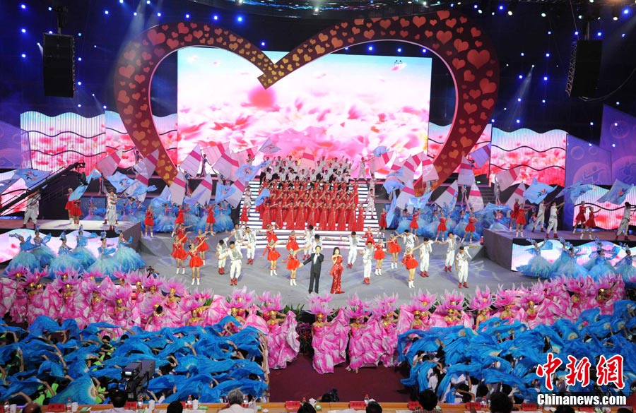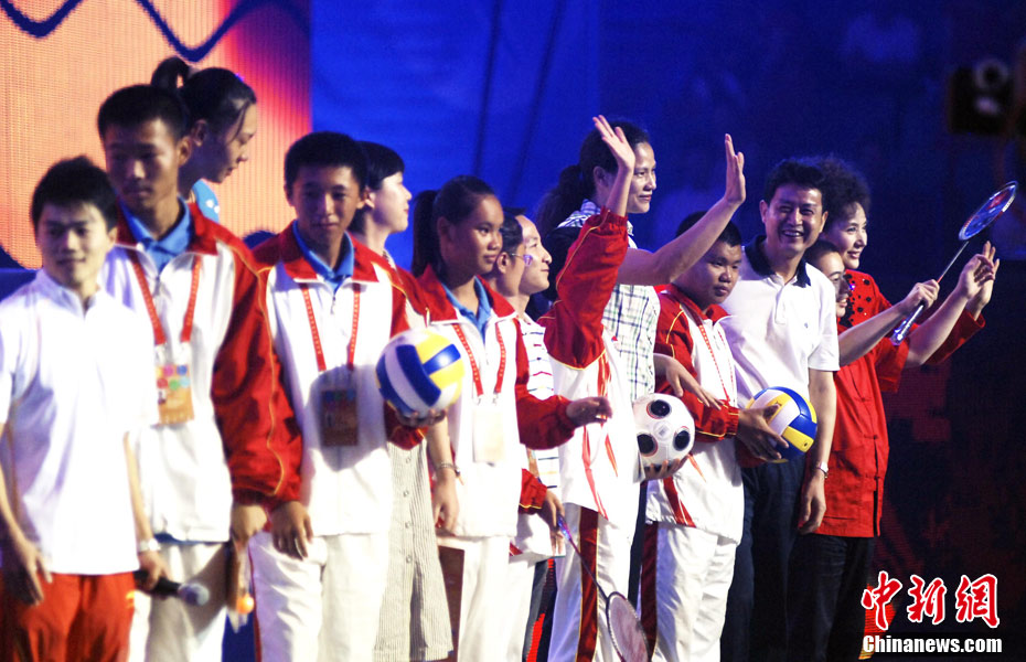 9月25日晚,第五屆全國特奧會(huì)閉幕式在福建省體育館舉行。閉幕式文藝晚會(huì)主題為“大愛無言”,分《感恩大地》《超越夢(mèng)想》《激情永恒》3個(gè)篇章,共10個(gè)節(jié)目,包括歌舞、朗誦、真情傾訴、獨(dú)唱等,演出時(shí)間約60分鐘。 圖為閉幕式文藝演出。 中新社記者 劉可耕 攝