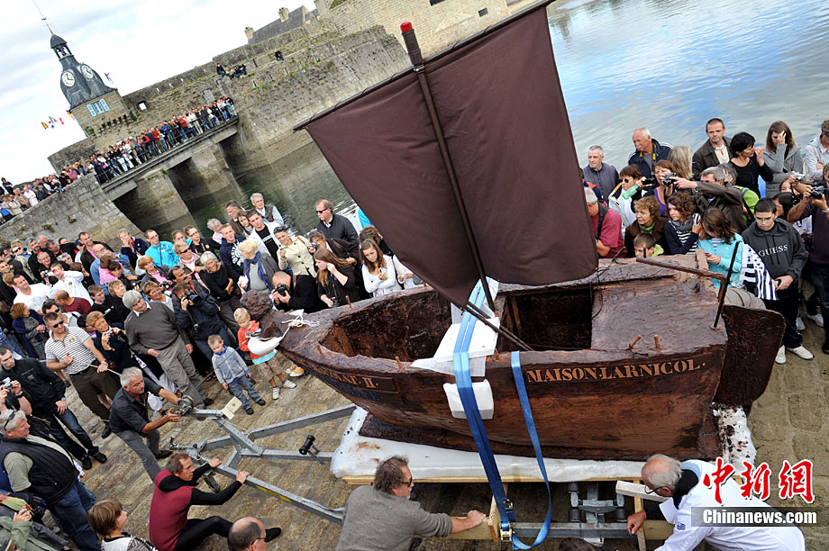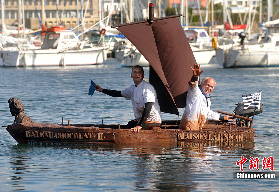當(dāng)?shù)貢r(shí)間9月25日,一艘用巧克力和冰糖制造的帆船在法國西北菲尼斯泰爾省的孔卡諾港下海試水,吸引不少居民和游客觀看。這艘巧克力帆船長3.5米、重1.2噸,由法國名匠設(shè)計(jì)。帆船的龍骨全部使用冰糖搭建,除風(fēng)帆和發(fā)動(dòng)機(jī)外,其他部分則使用巧克力做材料。當(dāng)天,這只巧克力帆船載著制造者和一名乘客成功駛離孔卡諾港,在海上巡航數(shù)圈后安全返回,現(xiàn)場(chǎng)觀眾彩聲一片。