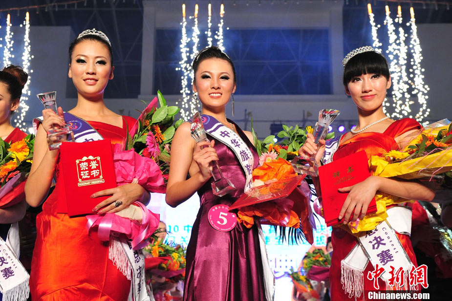 9月26日晚,2010中華旅游小姐大賽中國總決賽暨劍門關(guān)旅游形象大使選拔賽在四川省劍閣縣落下帷幕。40名佳麗們先后通過了熱情奔放的活力裝展示、風(fēng)情萬種的泳裝展示、雍容典雅的晚禮裝展示以及才藝表演、休閑裝展示后,經(jīng)評委們認(rèn)真評判,最終本賽季8個單項獎、十佳選手以及佳麗三甲相繼產(chǎn)生。王子星、李彤、許亞楠分獲冠、亞、季軍,并獲得劍門關(guān)旅游形象大使的殊榮。中新社記者 李學(xué)仕 攝