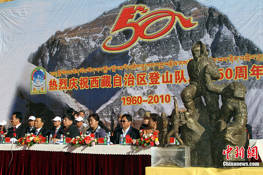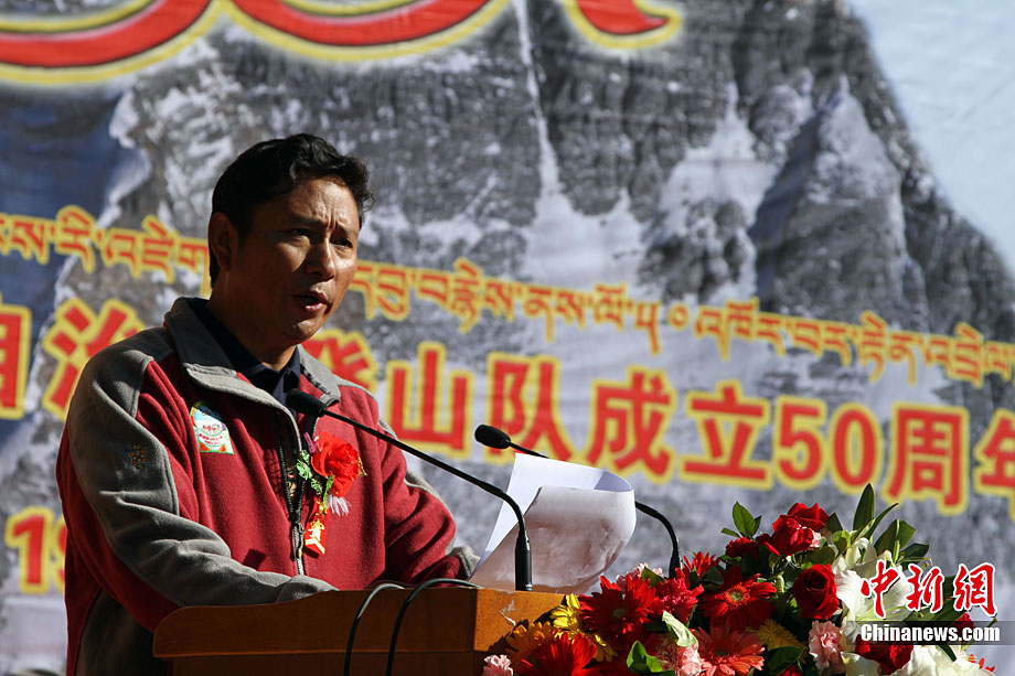 西藏自治區(qū)登山隊28日上午在拉薩舉行該隊成立50周年慶典。西藏自治區(qū)登山隊成立于1960年10月1日,是中國目前唯一齊裝滿員的專業(yè)登山運動隊。建隊50年來,先后有藏漢族登山運動員80多人登上世界第一高峰——珠穆朗瑪峰,280人次登上8000米以上高度。徐長安 攝