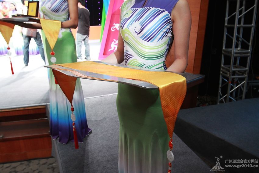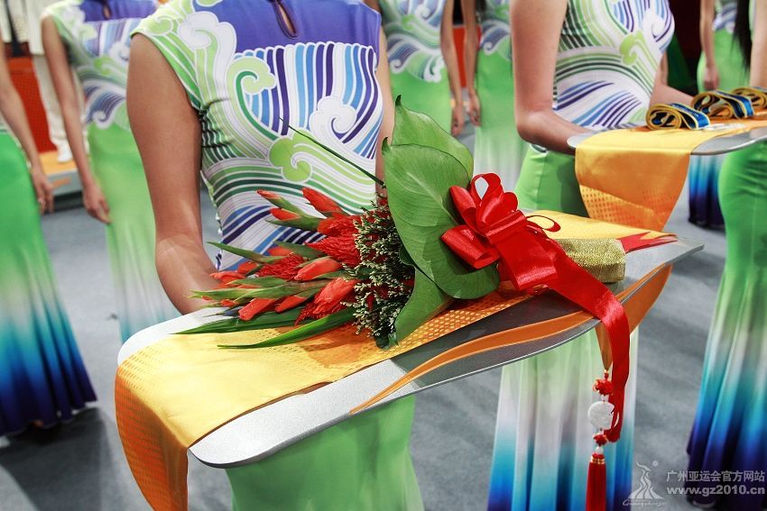 9月29日下午,第16屆亞運(yùn)會頒獎(jiǎng)儀式系列物資發(fā)布儀式在廣州市二少年宮舉行。圖為頒獎(jiǎng)禮儀。圖片來源:廣州亞運(yùn)會官網(wǎng)