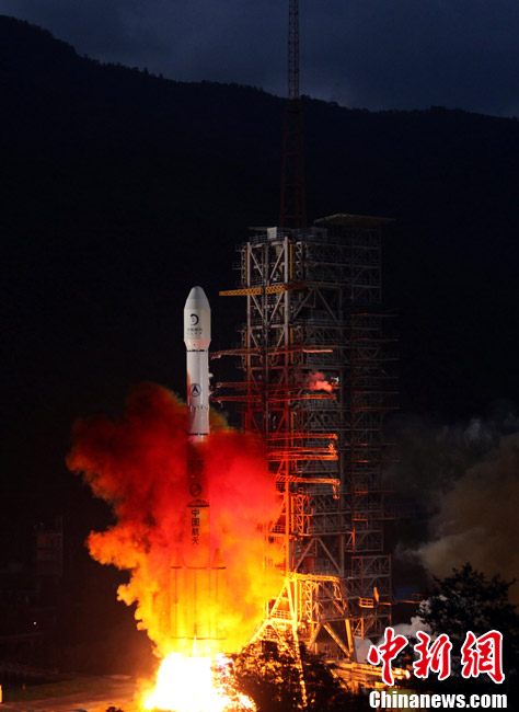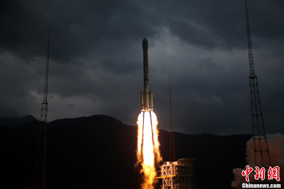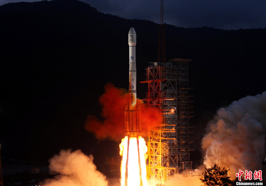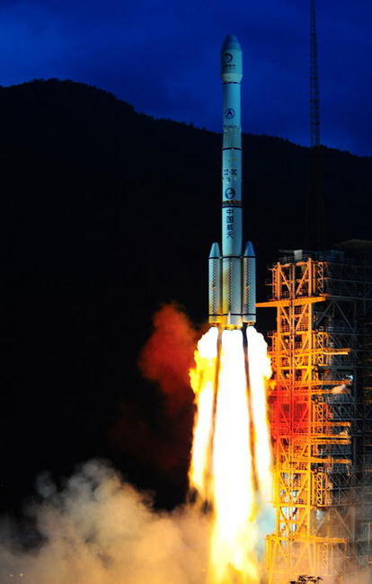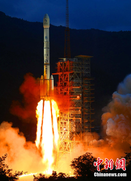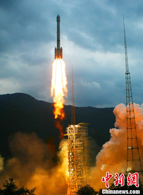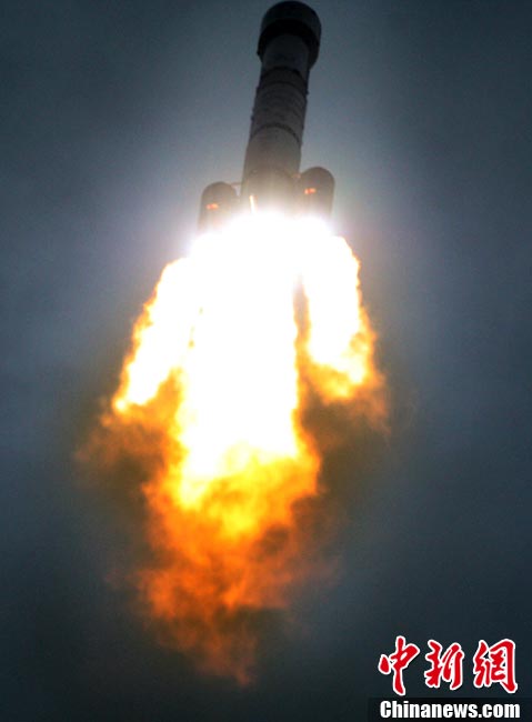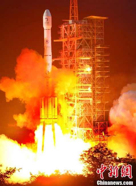2010年10月1日18時(shí)59分57秒,中國(guó)探月工程二期的技術(shù)先導(dǎo)星“嫦娥二號(hào)”在西昌衛(wèi)星發(fā)射中心由“長(zhǎng)征三號(hào)丙”運(yùn)載火箭發(fā)射升空。中新社記者 宋吉河 攝