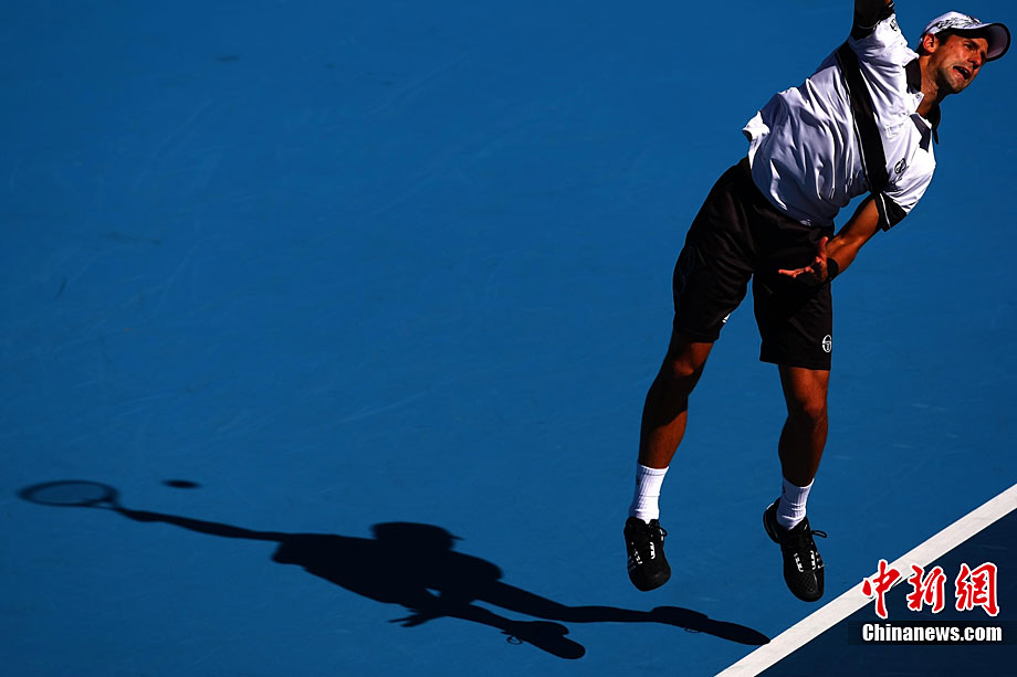 10月11日,中國網(wǎng)球公開賽決出了男單冠軍的歸屬。在這場因雨持續(xù)了兩天的比賽中,衛(wèi)冕冠軍兼頭號種子德約科維奇以6-2/6-4完勝費(fèi)雷爾,成功衛(wèi)冕2010中網(wǎng)男單桂冠。中新社記者 富田 攝