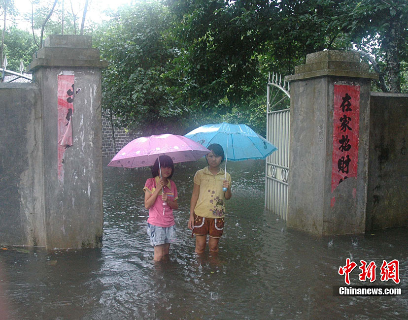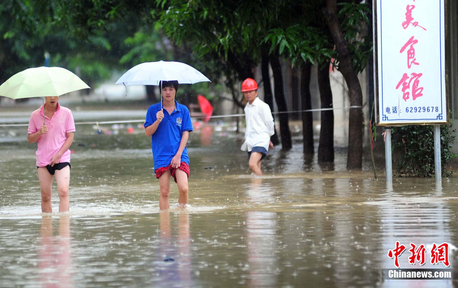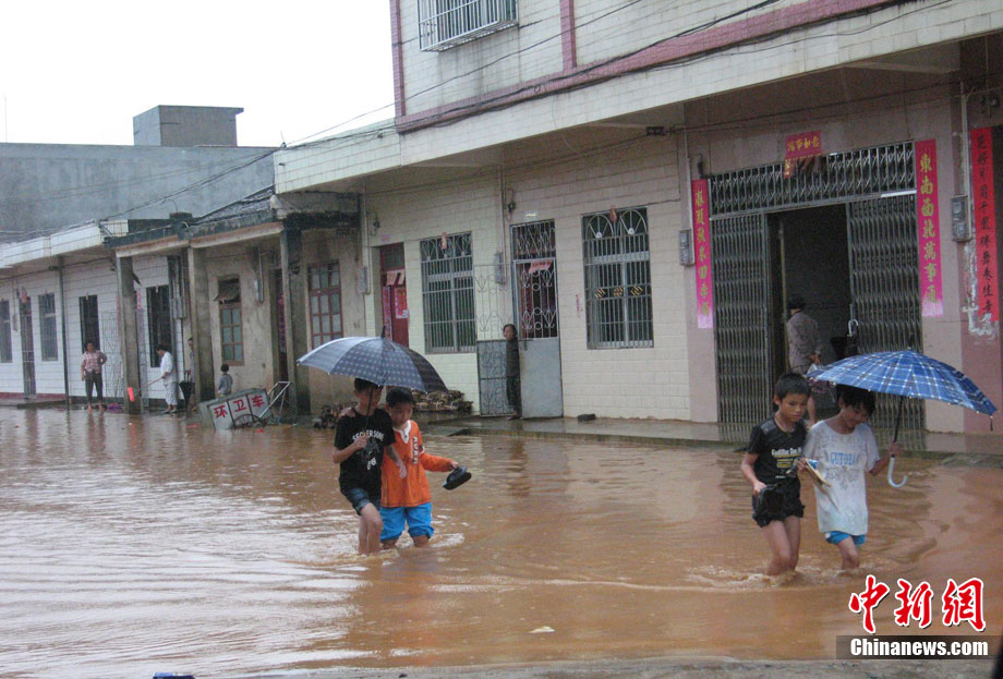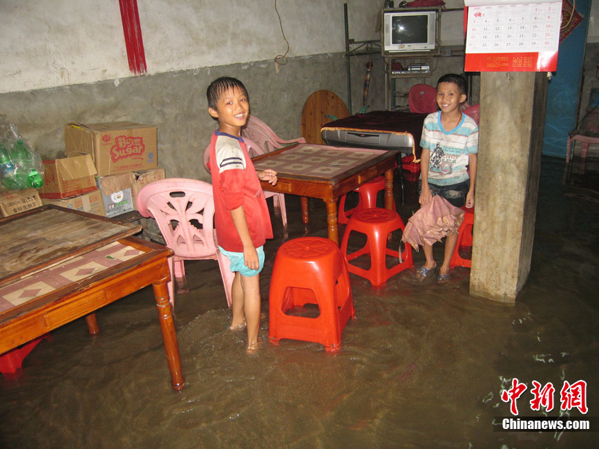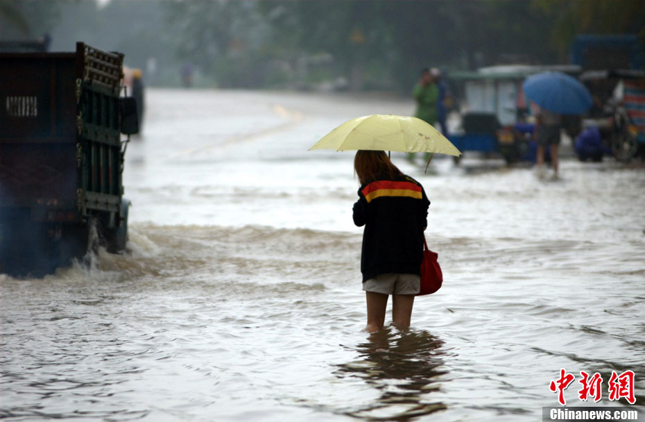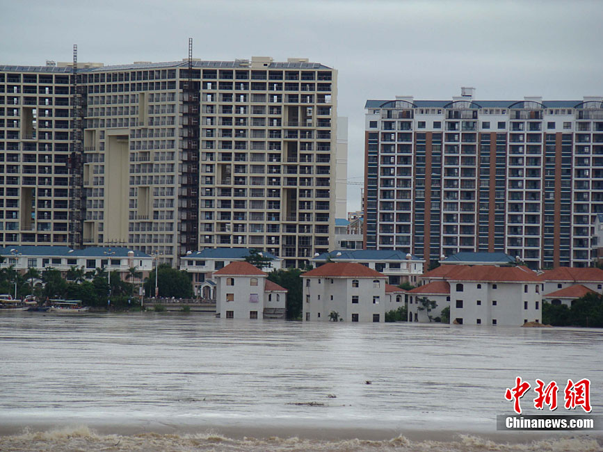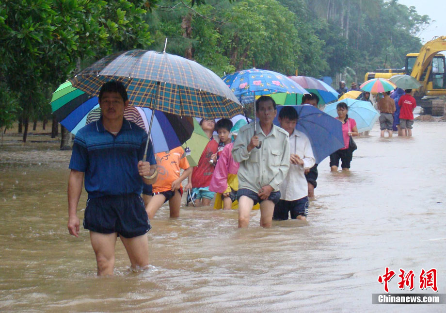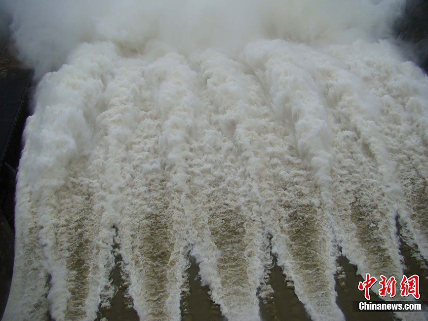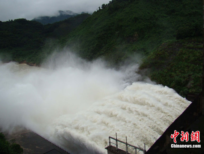 10月16日9時(shí),受持續(xù)強(qiáng)降雨影響,瓊海市牛路嶺水庫(kù)最高水位達(dá)105.16米,超過防洪限制水位105米,牛路嶺水庫(kù)水電站打開7個(gè)閘門,以每秒3000立方米流量泄洪到萬泉河。當(dāng)日上午,瓊海市政府緊急將萬泉河沿岸7鄉(xiāng)鎮(zhèn)群眾緊急轉(zhuǎn)移。中新社發(fā) 付美斌 攝