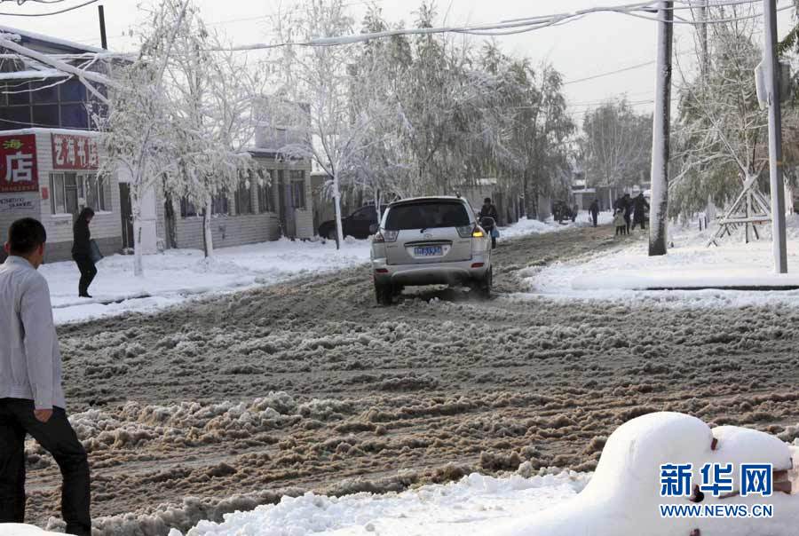 中央氣象臺近日發(fā)布消息,受3股冷空氣影響,新疆、西藏、青海、甘肅、黑龍江和內蒙古等9省區(qū)入冬在即。圖為10月16日,黑龍江省七臺河市降雪,市民打著傘冒雪出行。秦存廣 攝 圖片來源:新華網(wǎng)