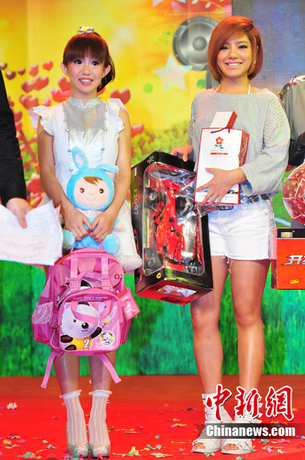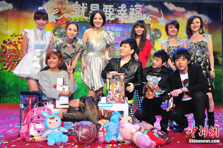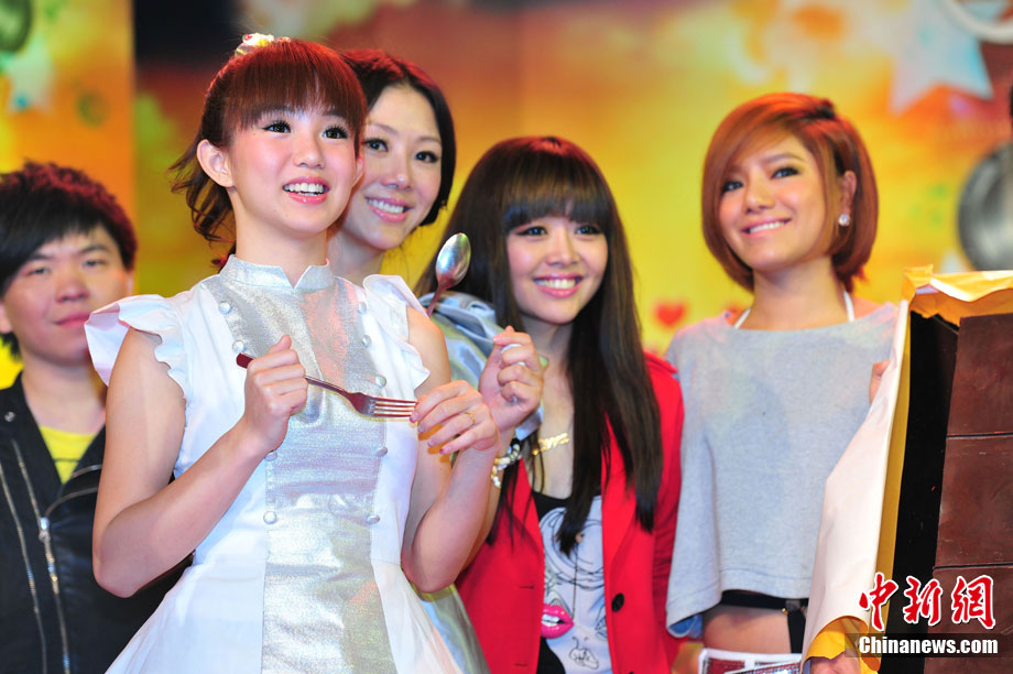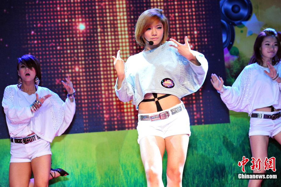 10月17日,2010年度北京流行音樂典禮歡唱會(huì)啟動(dòng)儀式在京舉行,宣告“中歌榜”年度盤點(diǎn)正式啟動(dòng)。江映蓉、臺(tái)灣“奶油甜心”郭書瑤、王箏、黃琦雯、常石磊等樂壇的新生力量到場助陣,共同品嘗一塊重達(dá)8公斤的巨型巧克力,巧克力上的“就是要幸!弊謽右彩潜灸甓鹊涠Y口號(hào)。圖為江映蓉在現(xiàn)場勁歌熱舞。中新社記者 李學(xué)仕 攝