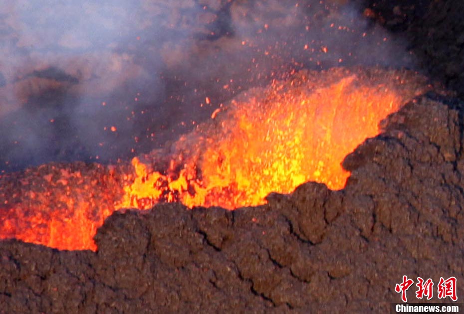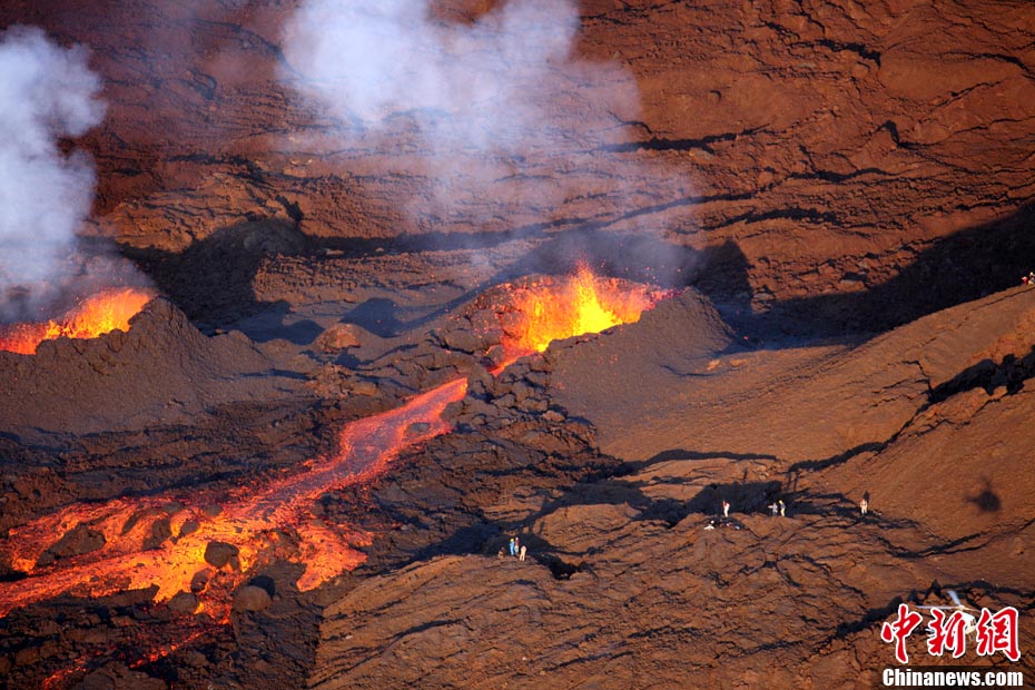 2010年10月14日,法國(guó)留尼旺島上的弗爾乃斯火山(Piton de la Fournaise)開(kāi)始噴發(fā)熔巖流。圖為鳥(niǎo)瞰該火山噴發(fā)出的熔巖流。位于印度洋西南部的弗爾乃斯火山是世界上最活躍的活火山之一。