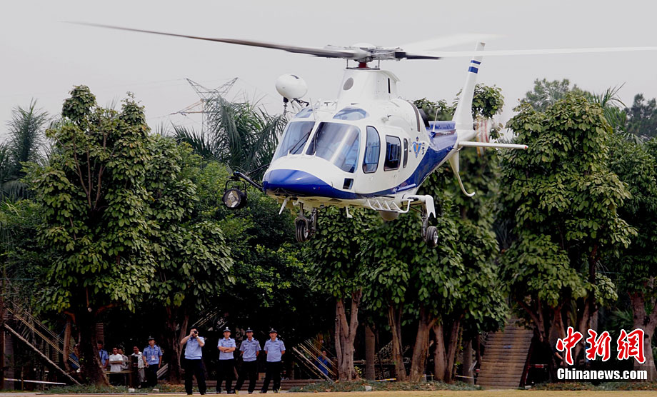 10月18日,南寧警用直升機(jī)首飛儀式在南寧青秀山舉行,這是南寧首架也是中國(guó)西南首架警用直升機(jī)。該機(jī)最大速度每小時(shí)311千米,最大航程是977千米,最大起飛重量是3000千克,駕駛艙可乘坐2名飛行員,客艙內(nèi)放置有一個(gè)工作臺(tái)和5個(gè)乘客座椅,續(xù)航時(shí)間為4小時(shí),是意大利阿古斯特-韋斯特蘭公司生產(chǎn)的A109E輕型雙發(fā)直升機(jī)。據(jù)悉,這是據(jù)廣州、北京、上海后,第四個(gè)擁有警用直升機(jī)的城市。圖片來(lái)源:cnsphoto loniya 攝