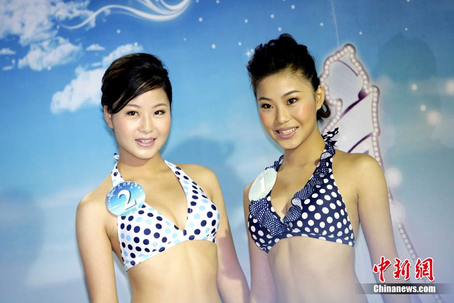 10月19日,參加《2010亞洲小姐競(jìng)選》(港澳賽區(qū))的9號(hào)佳麗陳明月(右)和10號(hào)佳麗何婭換上泳裝,進(jìn)行水上競(jìng)技,以各種游戲方式放松心情去迎接總決賽。中新社發(fā) 洪少葵 攝