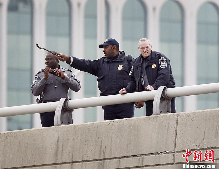美國軍事威力的象征—五角大樓當(dāng)?shù)貢r(shí)間19日清晨遭到槍擊,從一處停車場(chǎng)射出的子彈擊中了大樓辦公室的玻璃,但未造成人員傷亡。圖為調(diào)查人員在美國華盛頓五角大樓附近搜尋證物。
