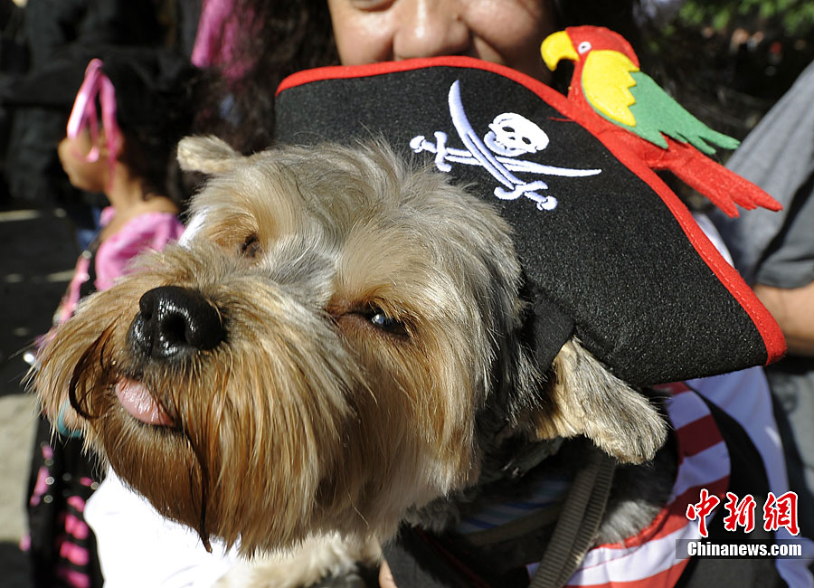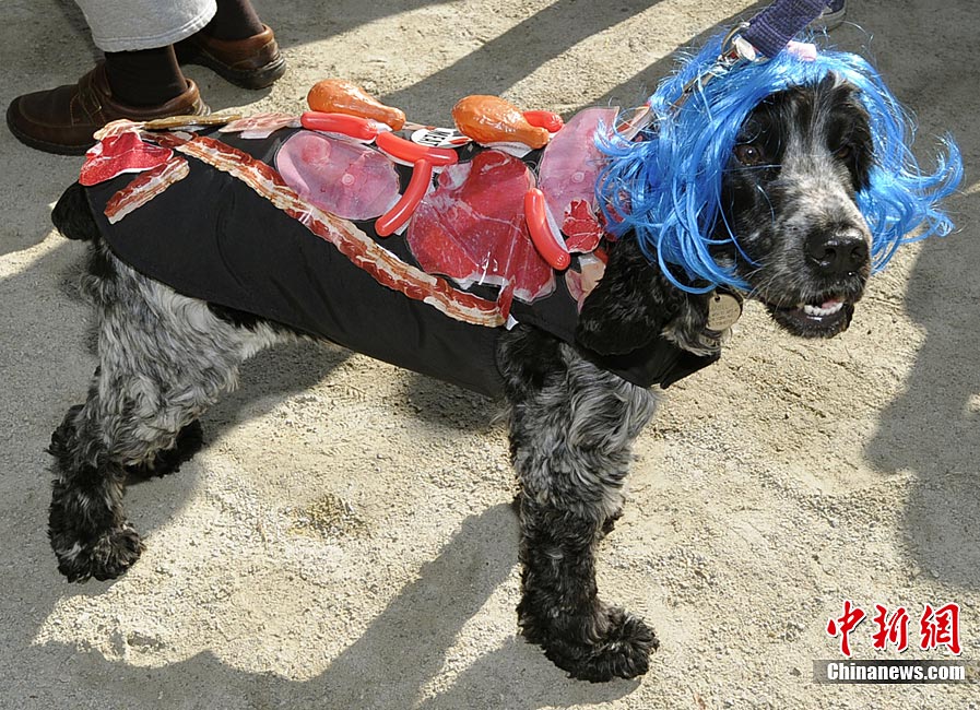 10月31日是西方傳統(tǒng)的萬圣節(jié)。當(dāng)?shù)貢r(shí)間10月23日美國紐約湯普金斯廣場(chǎng)公園舉行了第20屆萬圣節(jié)小狗大游行活動(dòng)!俺鱿被顒(dòng)的小狗們裝扮的造型都很別致,讓人忍俊不禁。