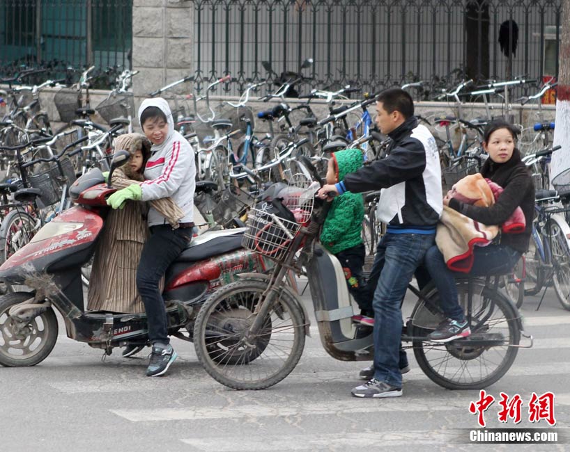 10月26日,河南鄭州,由于遭遇近5年來同期最強(qiáng)寒潮天氣襲擊,鄭州氣溫驟降,民眾出行都換上了厚厚的棉衣。據(jù)中央氣象臺發(fā)布:強(qiáng)冷空氣將繼續(xù)東移南下,中國南方部分地區(qū)氣溫將下降6~8℃,部分地區(qū)降溫幅度可達(dá)10℃。中國東部和南部海區(qū)在冷空氣的影響下,還將刮起9~10級風(fēng)。中新社記者 王中舉 攝