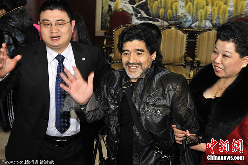 11月3日,北京首都機(jī)場(chǎng),“球王”馬拉多納抵達(dá),即將開展慈善之旅。老馬在接受記者采訪時(shí)表示,沒有意向執(zhí)教中國的某支足球隊(duì),若要執(zhí)教開價(jià)會(huì)很高。他還表示,自己已經(jīng)一年多沒有休假了,一直在為國家的足球事業(yè)效力。圖片來源:CFP視覺中國