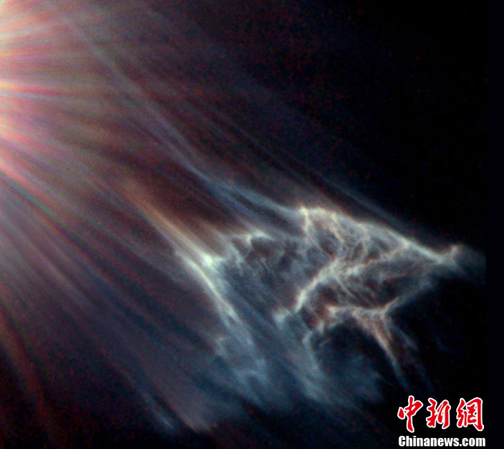 11月9日,美國宇航局前公布的照片顯示,昴星團(tuán)附近的氣體及塵埃云正遭到星光緩慢的破壞。在過去的10萬年間,這團(tuán)塵埃云偶然移動到了離昴星團(tuán)非常近的地方——距離僅為地球到太陽距離的3500倍,從而被該星團(tuán)排斥。