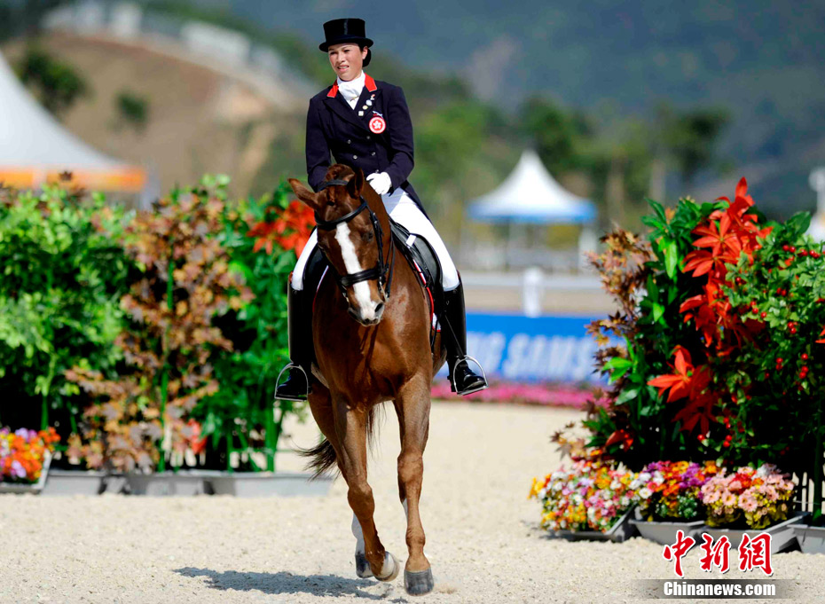 11月14日,廣州亞運馬術比賽在廣州馬術場舉行,這個號稱亞運最昂貴的比賽項目上駿馬、美女、帥哥齊全,據(jù)悉,比賽中的馬匹最少都要幾百萬人民幣,有的更高達幾千萬,參賽選手也云集了阿拉伯國家的皇室貴族和富豪。中新社記者 王東明 攝