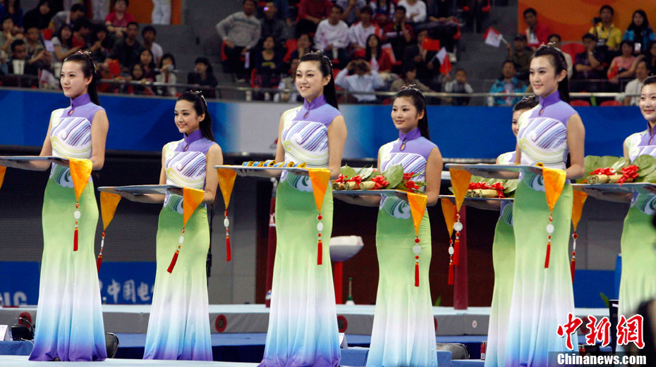 廣州亞運(yùn)會比賽開始后,對于這些美麗的姑娘們“戰(zhàn)斗”才剛剛打響,她們每天早上6點(diǎn)半就起床,趕到賽場,開始4個小時的準(zhǔn)備工作——化妝、做頭發(fā)、整體造型,這一切都為頒獎典禮的那短短一刻。