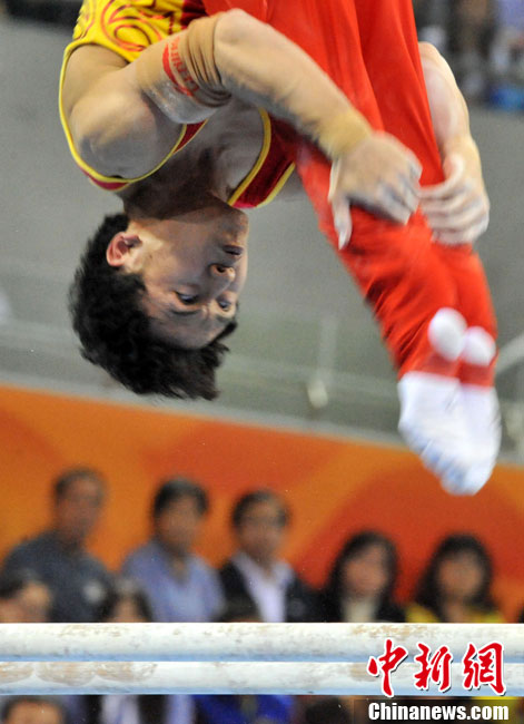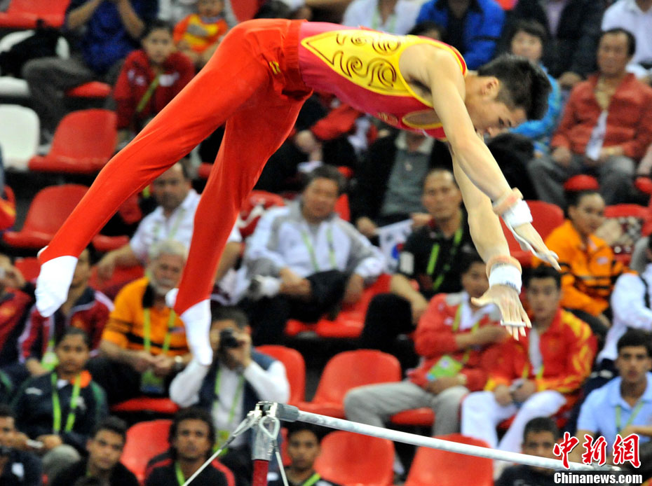 第十六屆廣州亞運(yùn)會(huì)11月17日進(jìn)行了場(chǎng)地自行車(chē)男子30公里記分賽,中國(guó)香港選手黃金寶奪得亞軍。圖為黃金寶與隊(duì)友在比賽中。中新社記者 趙振清 攝