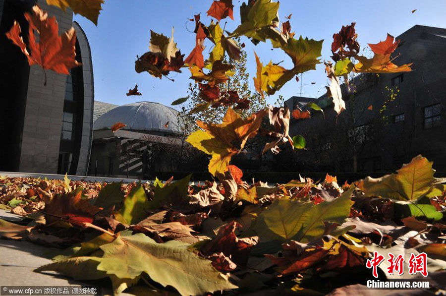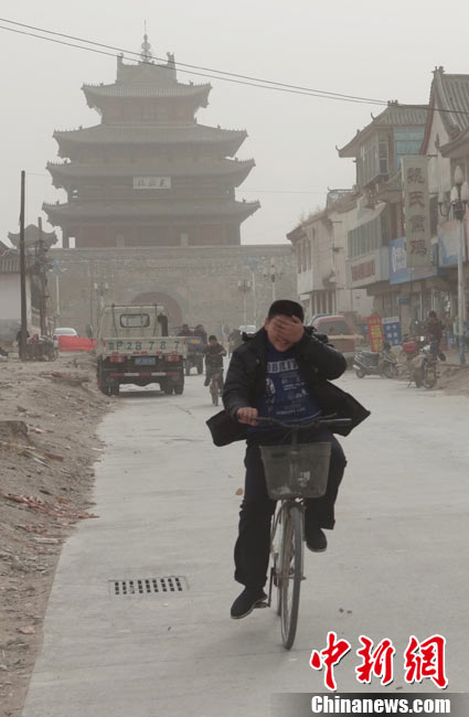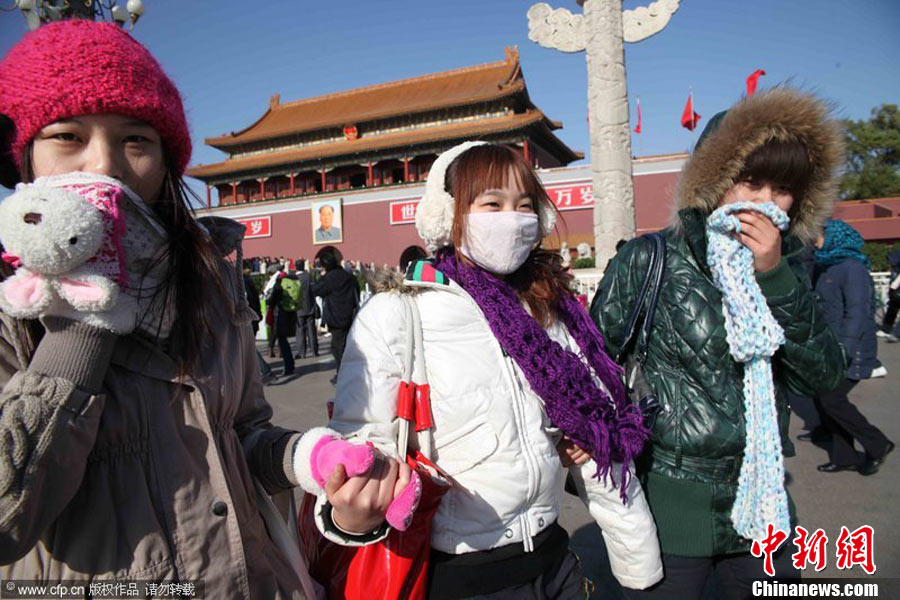 2010年11月21日,北京出現(xiàn)大風(fēng)天氣,風(fēng)力達(dá)到5-6級(jí),風(fēng)中伴有沙塵,給行人帶來諸多不便。陳曉根 攝 圖片來源:CFP視覺中國