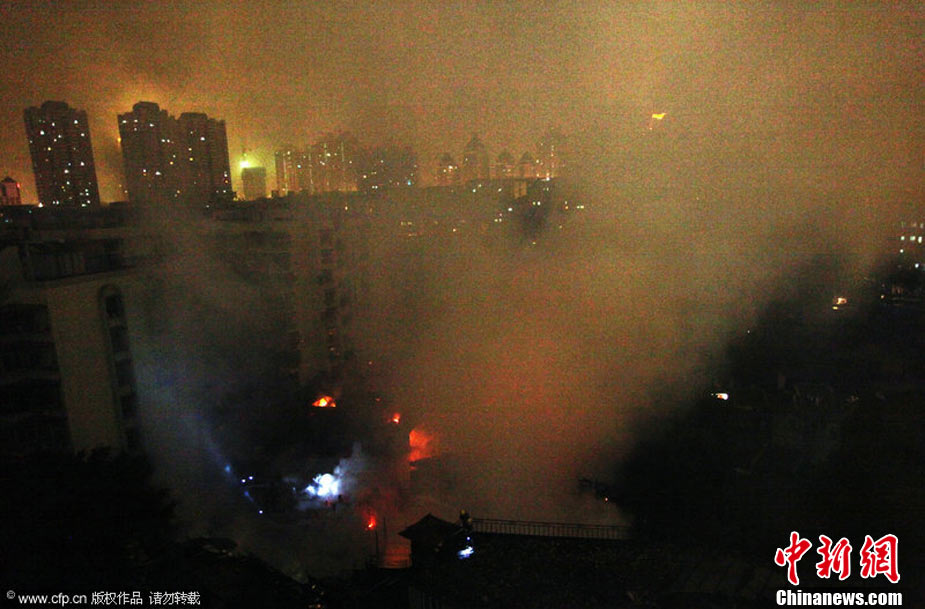 2010年11月21日晚近22時,福州臺江區(qū)新港街道中選社區(qū)附近一片民房發(fā)生火災(zāi),由于該民房附近主要為棚屋結(jié)構(gòu),大火迅速蔓延,燃燒一個多小時,火勢非常猛烈。劉影 攝 圖片來源:CFP視覺中國