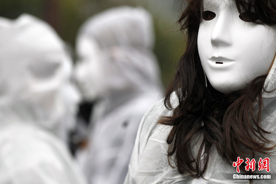 巴黎婦女身穿白衣呼吁反對(duì)家庭暴力