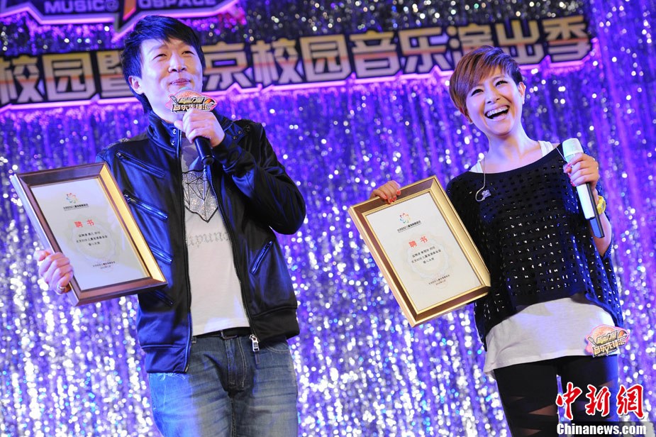 11月29日晚,2010公益進校園暨北京校園音樂演出季活動之李慧珍&樊凡主題歌友會在北京化工大學舉行,兩位歌手為歌迷們獻上了一首首經典的曲目。因演唱熱播電視劇《蝸居》主題曲爆紅的樊凡還親自譜曲了情歌《只需要一首歌》,并與李慧珍牽手甜蜜合唱,F(xiàn)場,積極投身愛心公益事業(yè)的樊凡和李慧珍還為貧困學生頒發(fā)了“媽媽的年夜飯”善款,并雙雙被北京婦女兒童基金會聘為“愛心大使”。圖為李慧珍、樊凡牽手獻唱。中新社記者 李學仕 攝