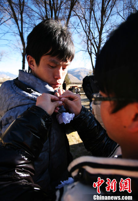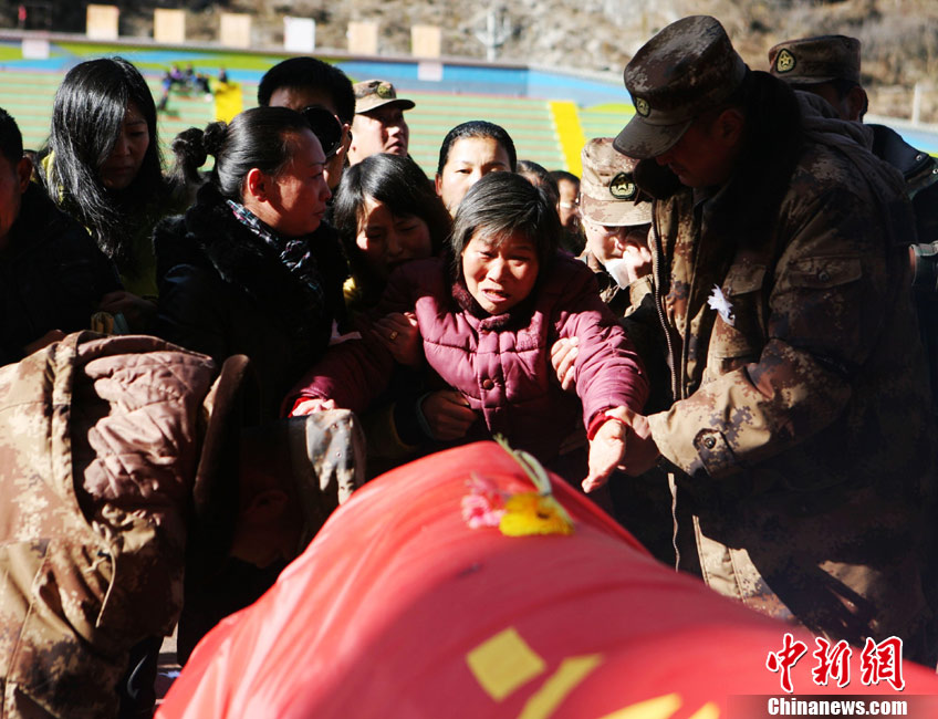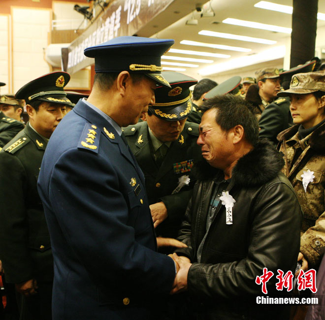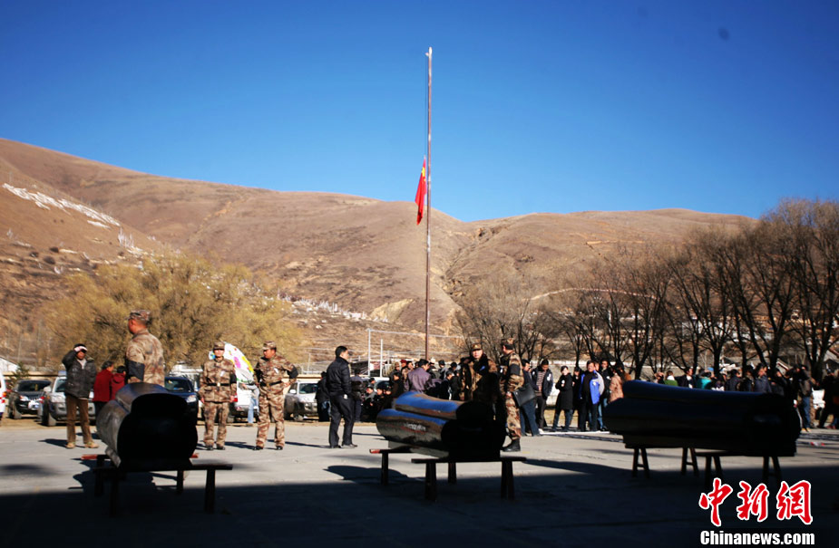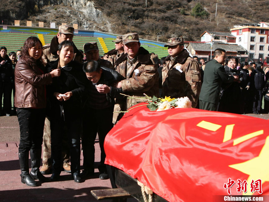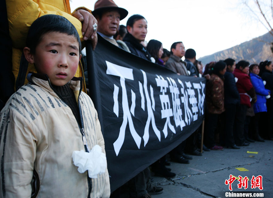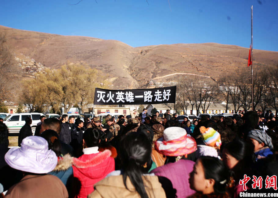 12月8日,四川省甘孜軍分區(qū)獨(dú)立營(yíng)道孚“12·5”撲滅山火犧牲烈士遺體告別儀式在康定體育館舉行。圖為一位老人前來送別。中新社發(fā) 劉忠俊 攝