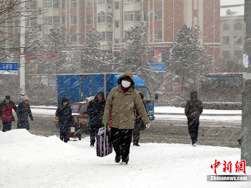 12月10日上午,長春街頭市民冒雪出行。從9日下午開始,吉林省遭遇大到暴雪,截至10日上午8時,長春市農(nóng)安縣降雪量最大,達到9.1毫米,雪深達12厘米。據(jù)悉,大雪致使長春龍嘉國際機場兩度關(guān)閉,共有9個進出港航班取消,千余名旅客滯留機場。中央氣象臺12月10日6時繼續(xù)發(fā)布暴雪藍色預(yù)警:12月10日08時至11日08時,遼寧東北部、吉林中東部、黑龍江大部等地有大雪(5~9毫米),其中,遼寧東北部的局地、吉林中東部偏北地區(qū)、黑龍江中東部偏南地區(qū)等地有暴雪(10~15毫米)。中新社發(fā) 李彥國 攝