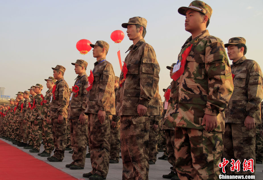 12月10日,北京市在西客站舉行隆重的歡送首批新兵儀式。來(lái)自東城、西城、朝陽(yáng)、海淀等14個(gè)區(qū)的500名新戰(zhàn)士身穿軍裝,胸帶紅花,即將奔赴四川、陜西、湖北、河北等地軍營(yíng)。北京市征召的新兵中,高校畢業(yè)生和在校生超過(guò)了三分之一。