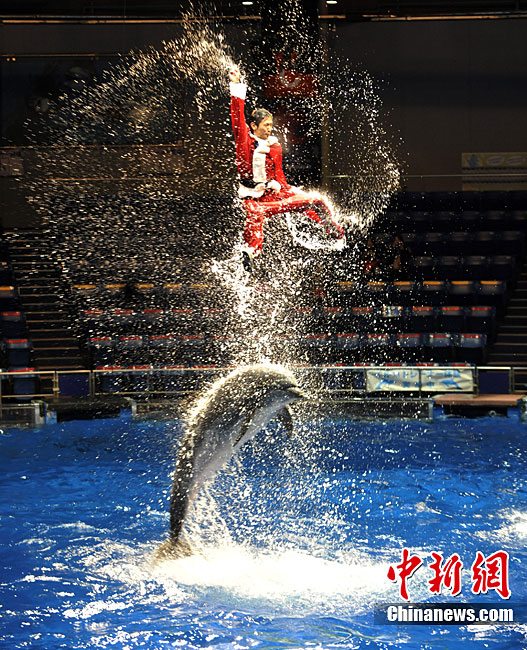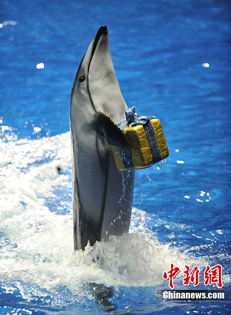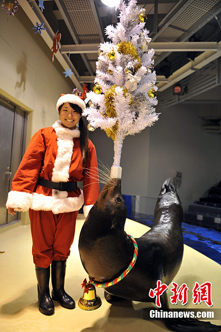 當(dāng)?shù)貢r(shí)間12月13日,日本東京一家水族館內(nèi)的海洋動(dòng)物進(jìn)行了一場(chǎng)精彩的圣誕表演。海豹、海豚為現(xiàn)場(chǎng)觀眾送去了一件件圣誕禮物。