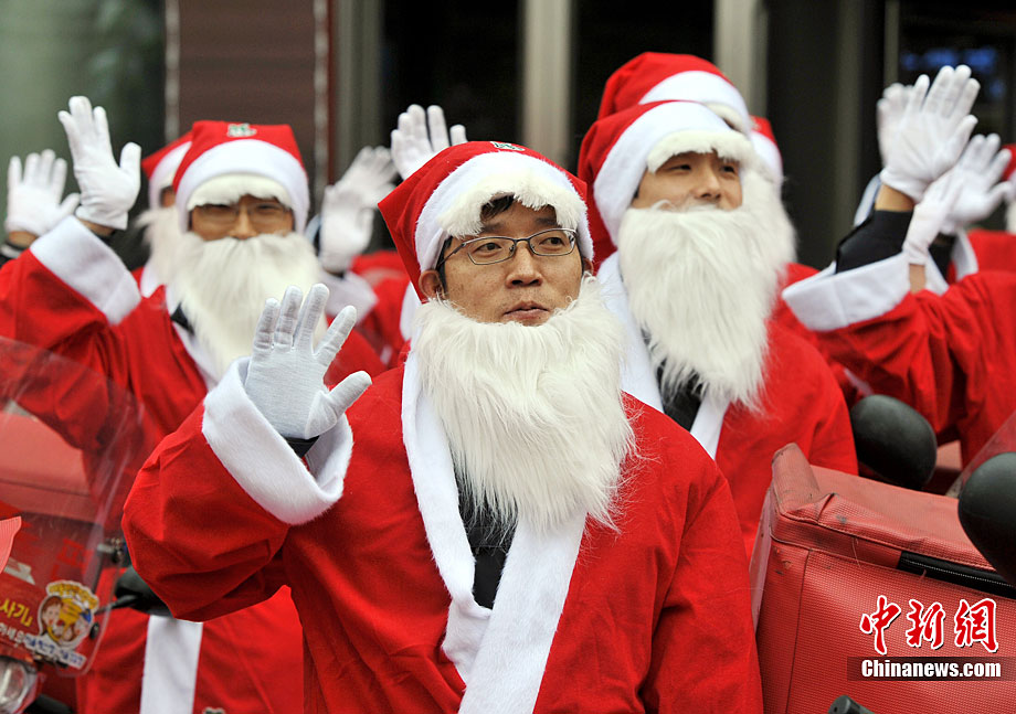 當(dāng)?shù)貢r(shí)間12月13日,韓國首爾中央郵局舉行“圣誕老人 愛的信使”儀式。郵遞員變身“圣誕老人”送郵件,迎接圣誕節(jié)的到來。