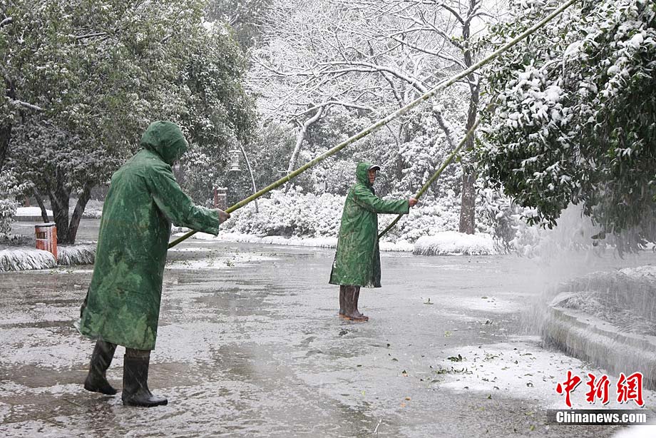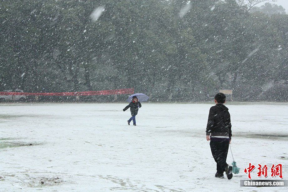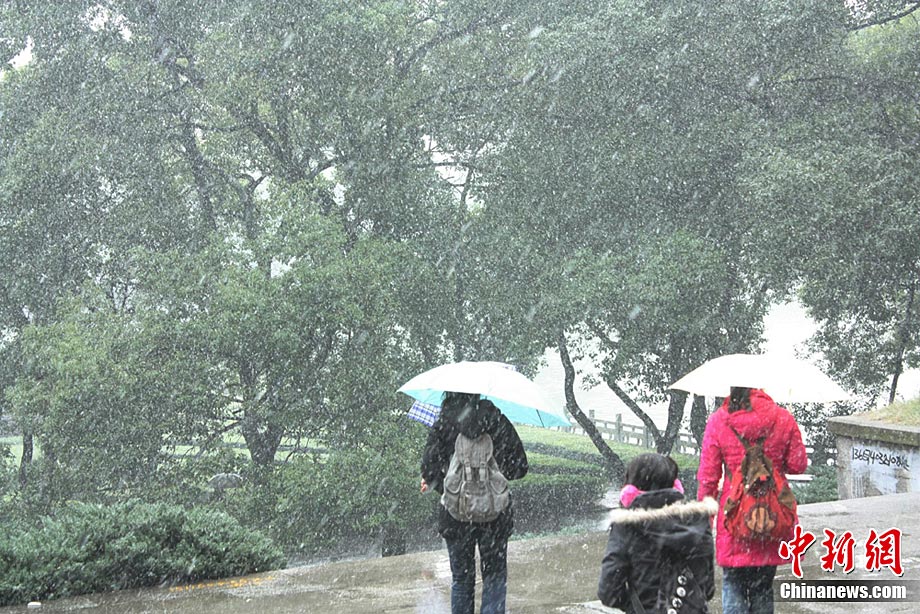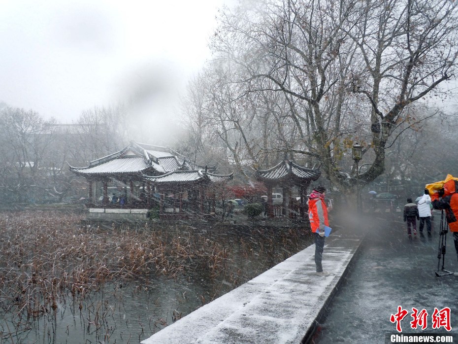 12月15日,杭州西湖上空飄起鵝毛般的雪花。據(jù)杭州市氣象臺發(fā)布的降溫報告,杭州最低氣溫已經(jīng)下降到2.5度,并伴有5至6級偏北風和明顯降雪天氣過程。中新社發(fā) 酈葉 攝