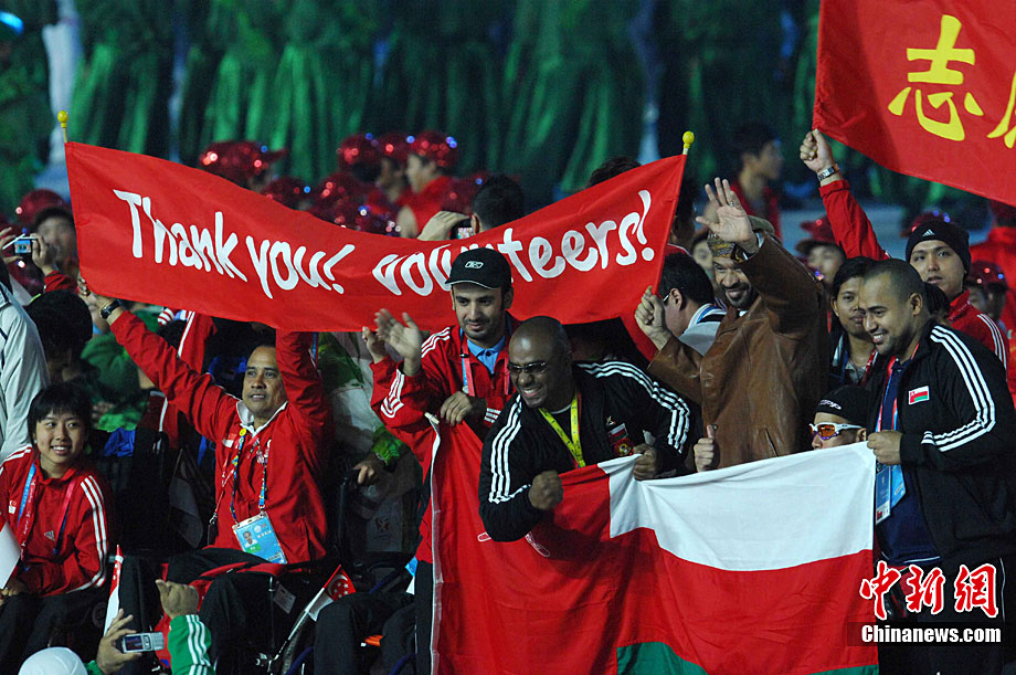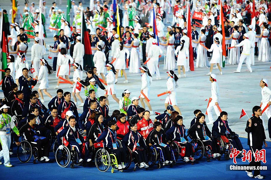 12月19日晚,廣州亞殘運(yùn)會亞完美落幕,在廣東奧林匹克體育中心舉行隆重的閉幕式,大型的文藝表演《你讓世界從此不同》,為亞洲留下一個(gè)永久的記憶。中新社記者 梁永強(qiáng) 攝