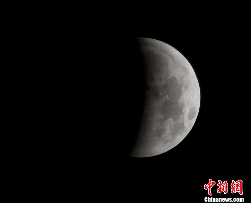 12月21日,精彩絕倫的月食天象現(xiàn)身天宇。月食分為半影月食、月偏食和月全食三種。月全食是地球運(yùn)行到太陽與月球之間,當(dāng)三者在一條直線時(shí),地球影子將月球遮住的天文現(xiàn)象。圖為北京時(shí)間17:54分拍攝的月全食“復(fù)原”過程。復(fù)圓指月球與地球本影二次外切,月球離開地球本影,月偏食結(jié)束。中新社記者 金碩 攝