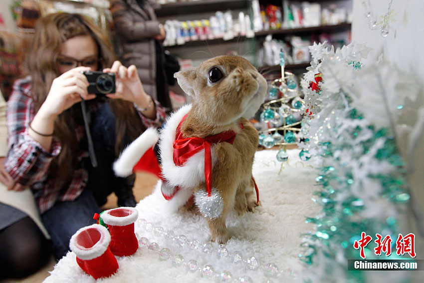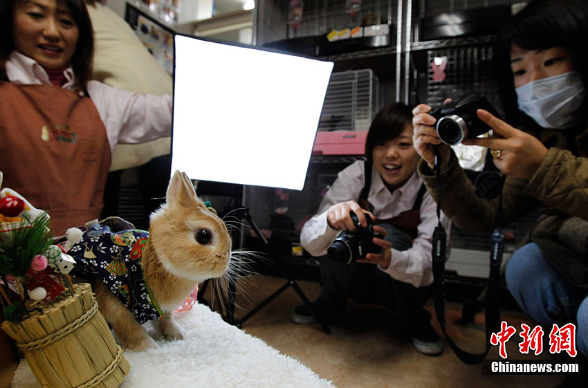 12月21日,日本橫濱一家寵物店的小兔子穿上傳統(tǒng)和服,迎接即將到來的圣誕節(jié)和兔年新年。日本自明治維新后采用公歷紀(jì)年,元旦即是兔年新年的開始。