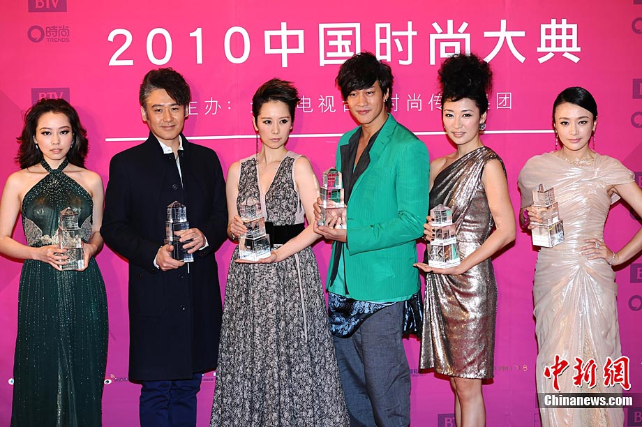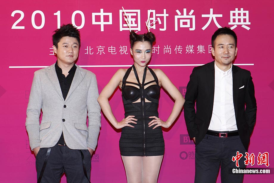 12月22日晚,由北京電視臺和時尚傳媒集團(tuán)聯(lián)合主辦的2010中國時尚大典在北京精彩上演。張藝謀、黃曉明、何潤東、立威廉、翁虹、秦嵐、張靚穎、愛戴、阿朵等眾星云集讓現(xiàn)場星光熠熠。2010時尚大典以“時尚改變生活”為主題,精心設(shè)計并頒布了覆蓋時尚生活和時尚工業(yè)全局的18個大獎。藝術(shù)家葉錦添領(lǐng)軍16位中國新銳時裝設(shè)計師打造明星與名師的“跨界”時尚秀場。大典精彩鉅獻(xiàn)了一場集震撼視覺表達(dá)和時尚魅力呈現(xiàn)的饕餮盛宴。圖為阿朵和“筷子兄弟”組合,阿朵的黑色緊身衣和鹿角發(fā)型十分搶鏡。中新社記者 李學(xué)仕 攝