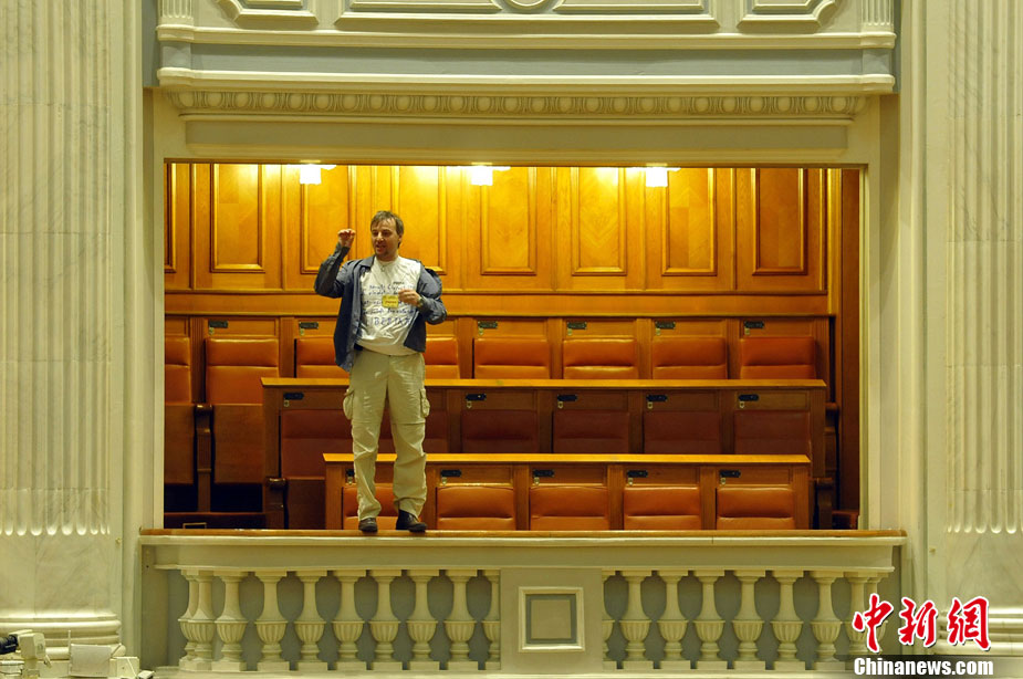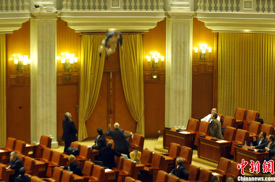 當(dāng)?shù)貢r間12月23日,羅馬尼亞一名男子為抗議殘障兒子的社會福利遭刪減,從國會旁觀席的看臺跳下,震驚了總理及在場議員。不過經(jīng)緊急送醫(yī)后,這名男子脫離了生命危險。據(jù)悉,這名跳樓男子是電視臺的工程人員。