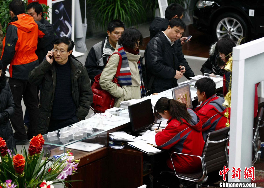 12月23日夜,北京民眾連夜排隊(duì)購(gòu)置新車。當(dāng)日下午,北京市人民政府新聞辦公室召開“北京交通改善措施”新聞發(fā)布會(huì),正式公布了《關(guān)于進(jìn)一步推進(jìn)首都交通科學(xué)發(fā)展 加大力度緩解交通擁堵工作的意見》,將實(shí)行綜合措施治理交通擁堵。其中,2011年度北京小客車總量額度指標(biāo)控制為24萬(wàn)個(gè),牌照通過(guò)搖號(hào)無(wú)償分配的政策成為民眾關(guān)注的焦點(diǎn)。中新社記者 富田 攝