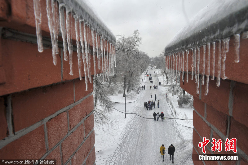 2010年12月25日至26日,持續(xù)近1天的凍雨將俄羅斯首都莫斯科變成了一個“大溜冰場”,給這座大都市帶來了諸多不便。這一罕見氣候現(xiàn)象從25日下午開始影響莫斯科市。當時,天空中開始下起雨,雨滴落到地面后受低溫影響,迅速形成了一層“冰殼”,導致很多道路完全被薄冰覆蓋,非常濕滑。圖片來源:CFP視覺中國