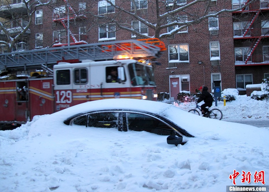 當(dāng)?shù)貢r間12月27日,紐約整座城市被大雪深埋,政府雪后清理行動遲緩,導(dǎo)致公共交通設(shè)施幾乎全線受阻,引起民眾不滿。紐約市長布隆伯格在當(dāng)日舉行的發(fā)布會上承認(rèn),年終將至,紐約市政府經(jīng)費捉襟見肘,因此“沒有額外的錢支付工人加班費”。這導(dǎo)致周末紐約暴雪過后街道清掃速度緩慢,交通大癱瘓延至星期一。圖為一輛停在路邊的汽車在大雪過后整整一天,仍然被深埋雪中。中新社發(fā) 魏晞 攝