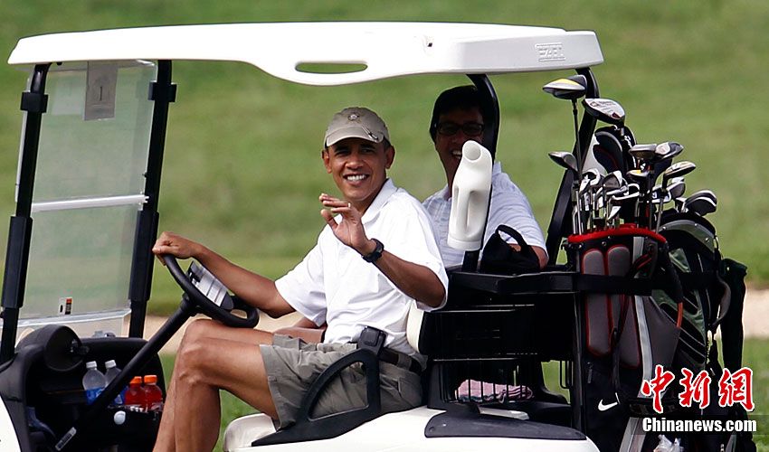 奧巴馬高爾夫球場(chǎng)享假期 當(dāng)司機(jī)大秀車(chē)技