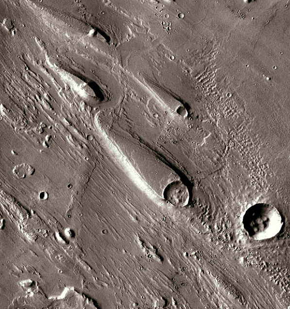 美國宇航局“火星偵察軌道器”在火星“阿拉比亞陸地平原”地區(qū),拍攝到的奇怪隕石彈坑。自從2006年以來,“火星偵察軌道器”已經(jīng)發(fā)回100兆兆位的信息,相當(dāng)于MP3中存了300萬首歌。