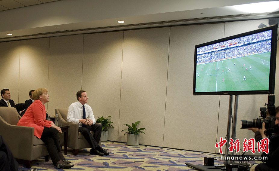 6月27日,正在加拿大參加G20領(lǐng)導(dǎo)人峰會(huì)的德國(guó)總理默克爾和英國(guó)首相卡梅倫,一同觀看了世界杯英格蘭與德國(guó)隊(duì)的比賽。
