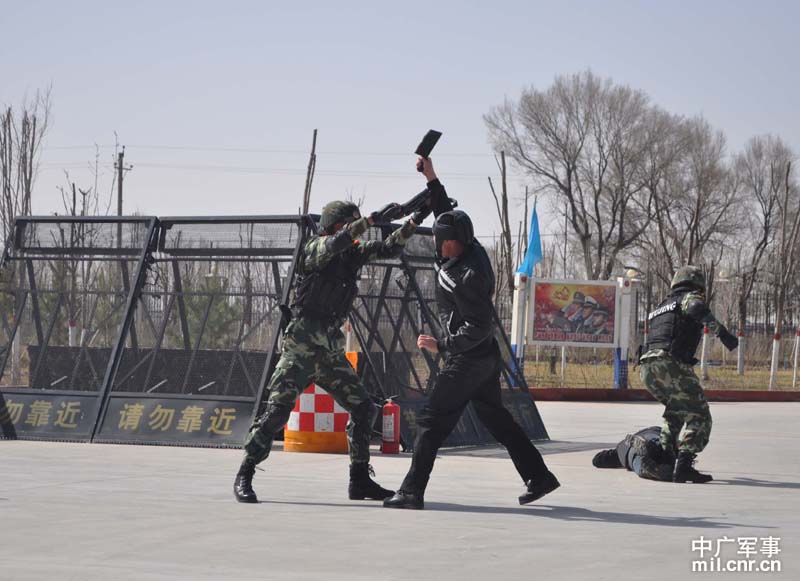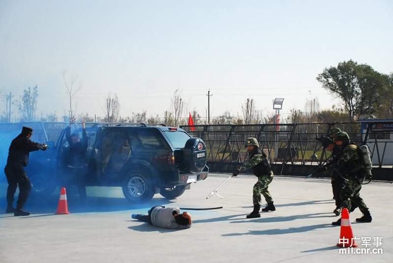 武警兵團指揮部解救“被劫持人質(zhì)”演練