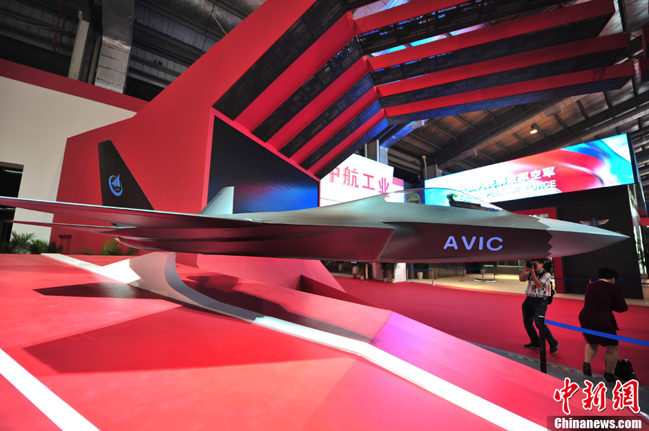 11月13日上午,第九屆中國國際航空航天博覽會(huì)在廣東珠海開幕,一架中國先進(jìn)戰(zhàn)斗機(jī)概念模型在中航工業(yè)展臺(tái)亮相,從外形上看,與前不久成功試飛的殲31相似,備受關(guān)注。中新社發(fā) 柯小軍 攝