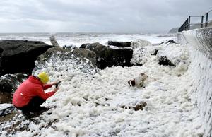 英國(guó)海岸漲潮產(chǎn)生泡沫奇觀