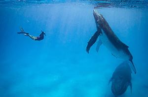 潛水模特與鯨魚深?!肮参琛?/a>
