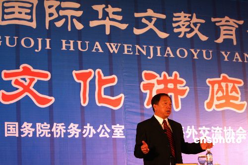 11月5日晚,在青島舉行的第五屆國(guó)際華文教育研討會(huì)文化講座上,南開大學(xué)教授孫立群做題為“中華文化的源與流”演講。中新社發(fā) 張勤 攝