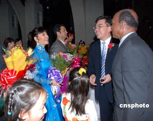 當(dāng)?shù)貢r(shí)間十一月十四日晚,中國南京藝術(shù)團(tuán)在美國芝加哥西北郊的珠瑞璉大劇院舉辦“和平頌”大型歌舞晚會(huì),中國駐芝總領(lǐng)事黃屏、伊利諾州州務(wù)卿懷特、芝加哥市長代表李雙振等和近千名觀眾一起觀看了這場藝術(shù)精湛、反映蓬勃時(shí)代氣息的演出。特邀嘉賓、著名國家一級(jí)演員殷秀梅、男高音歌唱家呂繼宏和前線歌舞團(tuán)的四十多位演員們的演出,受到當(dāng)?shù)貎S胞的熱烈稱贊和歡迎。中新社發(fā) 張大衛(wèi) 攝